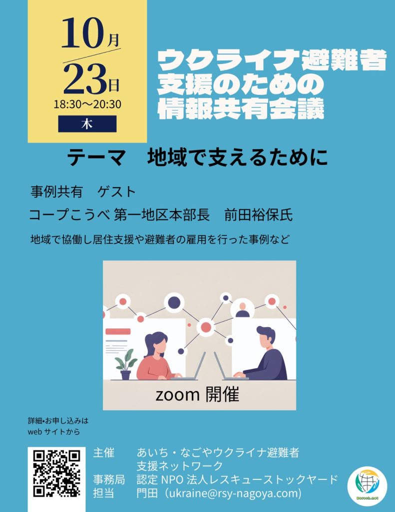 弊会では、ウクライナ避難者の現状をお伝えし、より多くの方に参画頂くため、また、支援者間での情報共有を目的として標題の会議を開催しています。